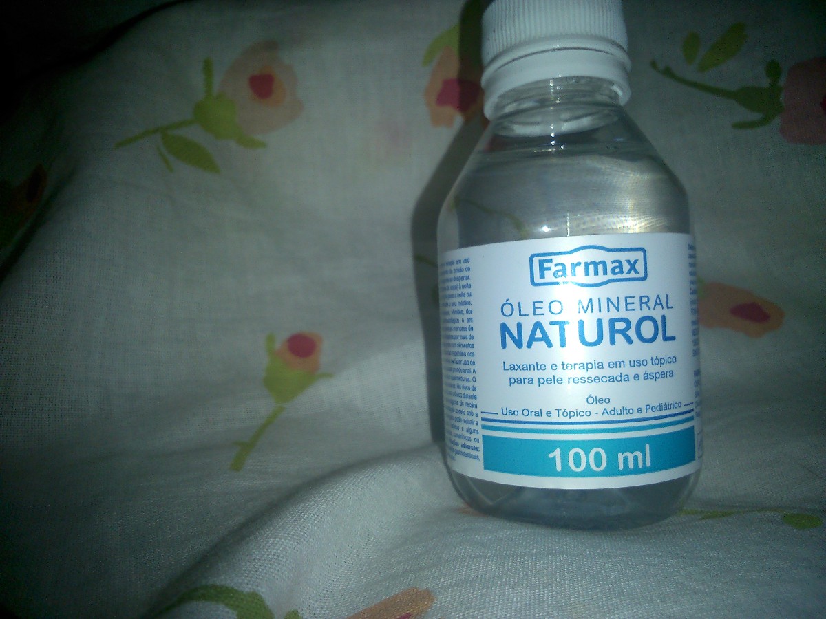 Usei: Óleo Mineral Naturol, da Farmax. Ele tem 100 ml e é 100% óleo mineral. Ao ler o rótulo, fiquei assustada com ' laxante e terapia em uso tópico para pele ressecada e áspera.' mas como a minha amiga que indicou disse que o uso era tranquilo, eu resolvi testar.